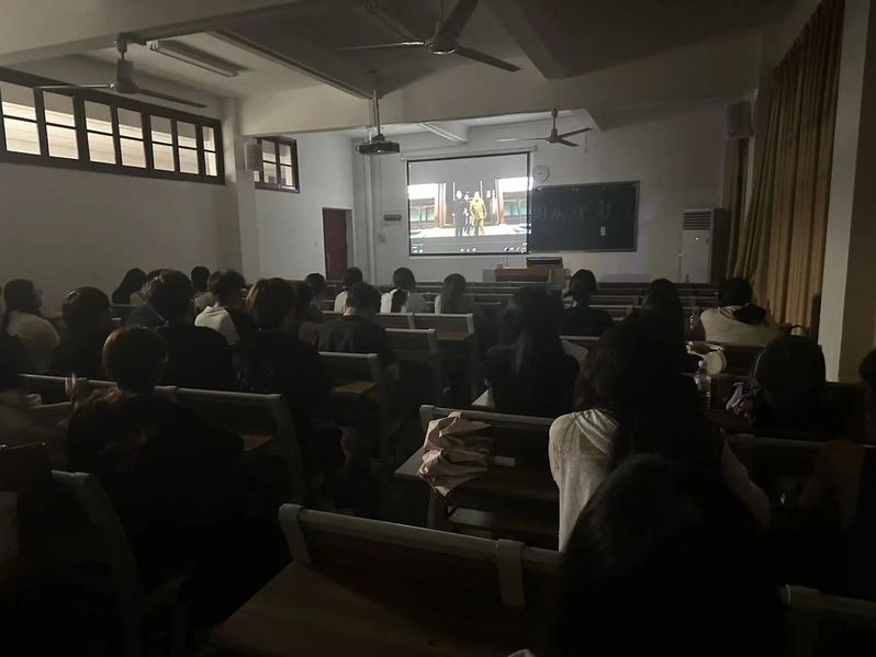 历史川流不息,精神代代相传。为了继续弘扬光荣传统,赓续红色血脉,庆祝新中国76周年华诞,9月30日晚,人文艺术系国庆观影活动在子兴楼顺利举办,2025级学生积极参与其中。