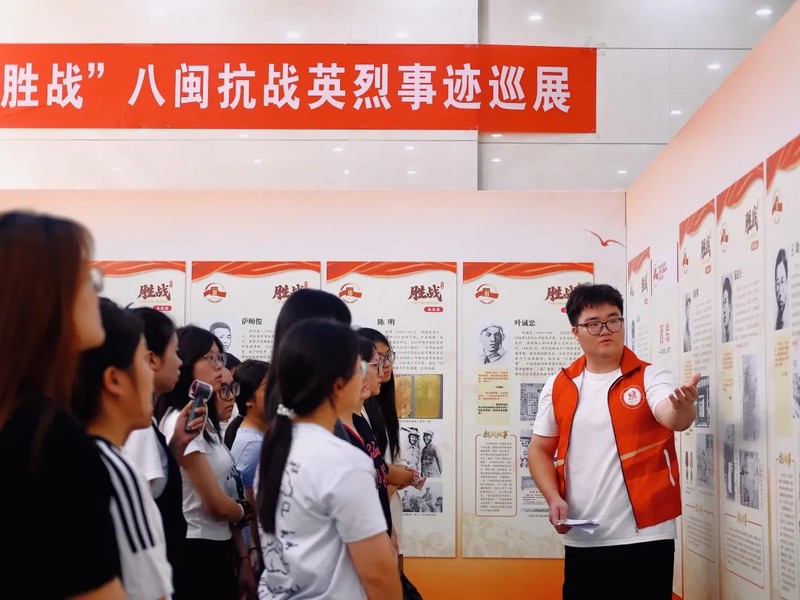 为重温八闽大地上的抗战历史,缅怀英烈功绩,弘扬伟大的爱国主义精神,10月9日,“胜利八闽抗战英烈事迹巡展宣讲活动”于福州大学至诚学院图书馆圆满落幕。学生助导协助学生志愿讲解员开展讲解工作,人文艺术系辅导员李妍娇到场指导,经济管理系党总支副书记江潇、团委书记林琦彬到场观看。