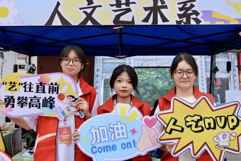 看台上喝彩声接连不断,人文艺术系的拉拉队员们带着饱满的活力与热忱,用清脆嘹亮的助威声点燃了赛场。这声声呐喊,既彰显了团队的蓬勃朝气,更汇聚成一束束温暖的光芒,为拼搏的健儿们注入勇往直前的力量。运动会的精彩,不仅定格于健儿们的拼搏瞬间,也离不开志愿者们的默默奉献。人文艺术系的志愿者们坚守岗位、步履不停,他们在赛场内外忙碌的身影,化作最温暖的支撑,保障着各项赛事的顺畅推进。