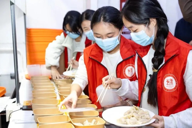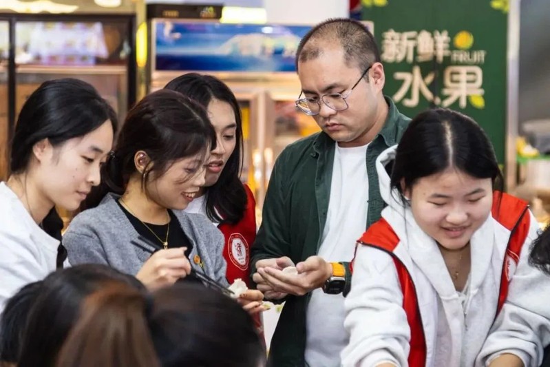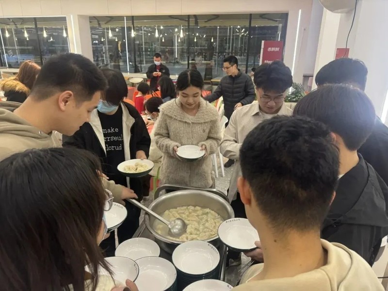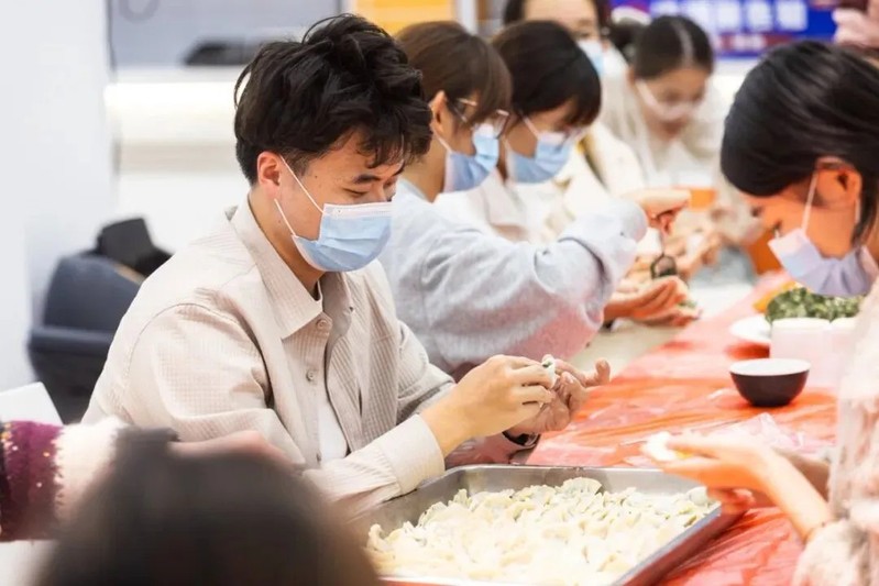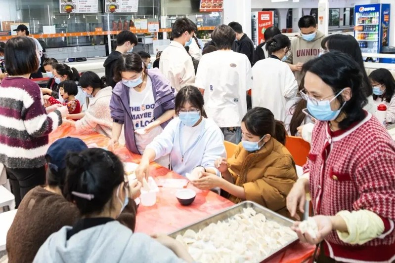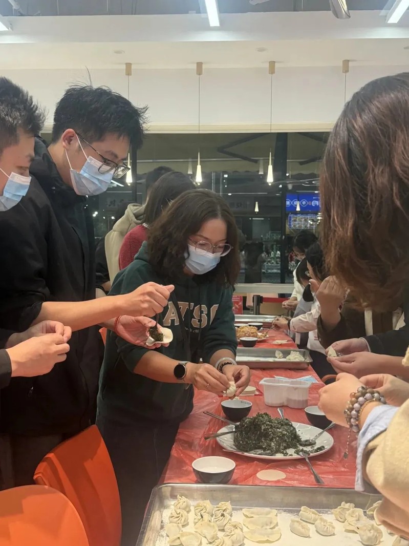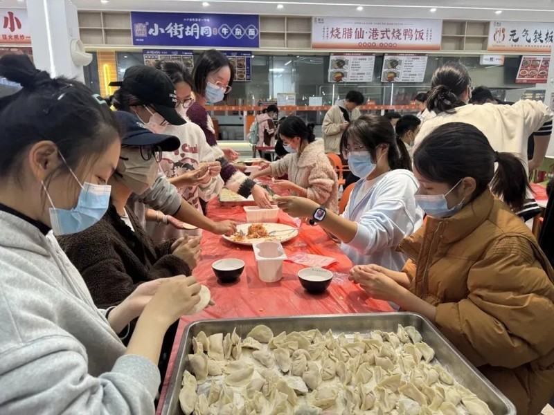 活动围绕“千饺暖寒冬,百愿寄前程”展开,日间于子兴楼前举办“研途有光”文化关怀活动,设置传统孔子像拓印体验区、热饮供应与心愿寄语墙,百余名考研学子在墨香与茶温中感受文化传承与情感支持。晚间,学院领导、教师代表、后勤员工与学生在学院各食堂一同揉面、擀皮、包馅,在劳动中共叙温情。食堂工作人员将煮好的饺子递至晚自习归来的学子手中,切实传递“暖胃更暖心”的关怀。