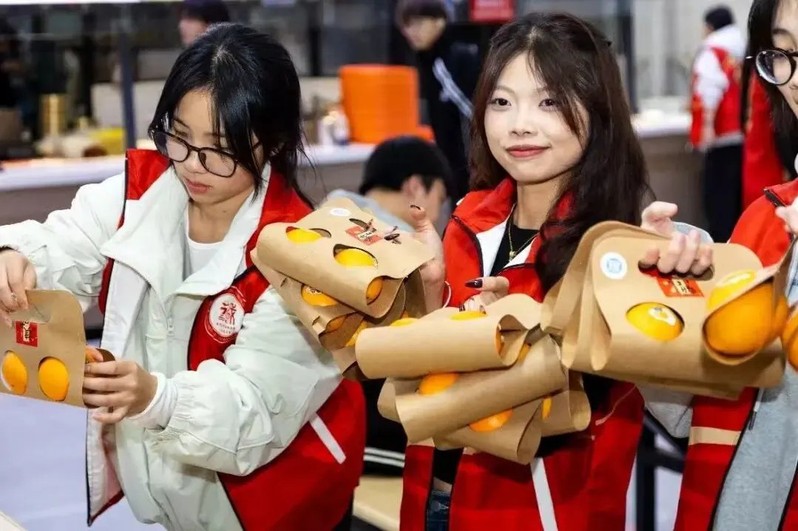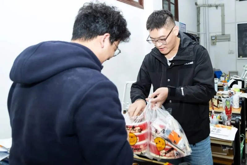 为进一步服务考研学子,学院还组织师生志愿者组成静音派送小组,将贴有“佼佼者”饺子与“橙功上岸”的暖心礼包悄然送至自习室,不扰学习、只送温暖。图书馆同时设立“橙”功上岸自取点,方便学子随时补充能量。