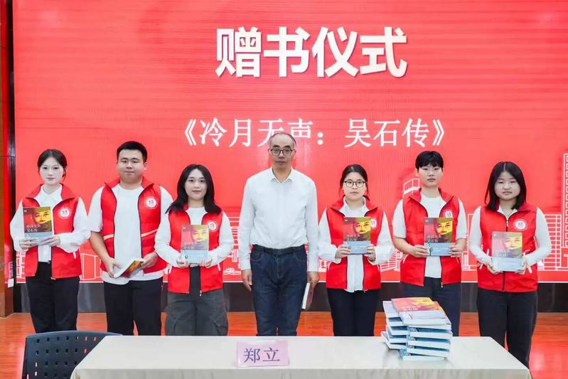 随后,在简朴庄重的赠书仪式中,郑立先生首先将其潜心著述的《冷月无声——吴石传》赠予福州大学至诚学院。学院副院长雷晓明代表学院上前受赠,紧接着,郑立先生继续向“小红传”宣讲员代表赠书,将这份承载历史记忆的精神火种亲手传递给青年一代。