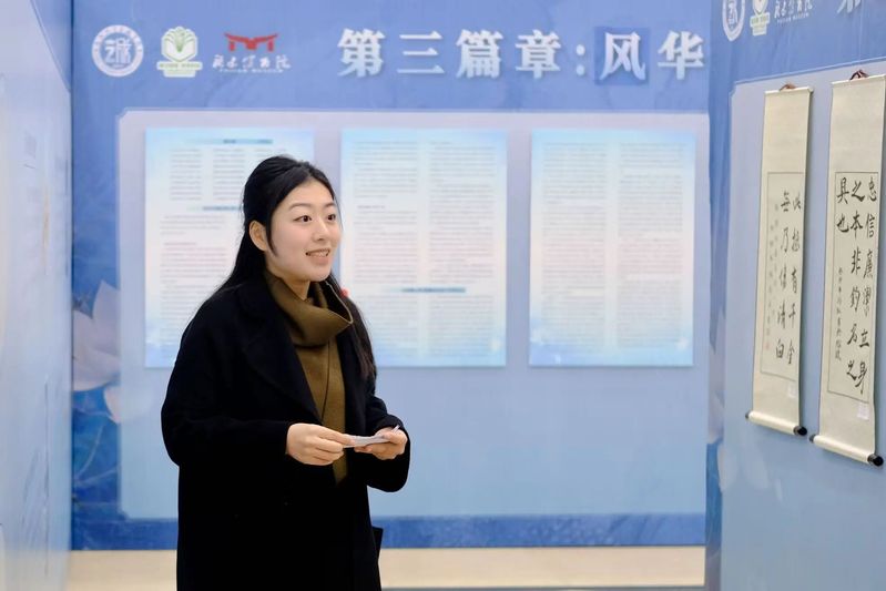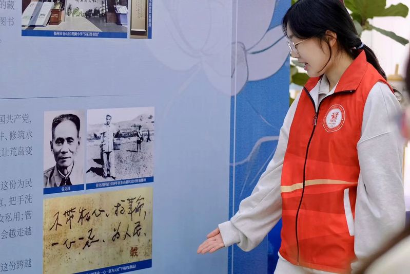 第二篇章“风骨颂·致敬清廉”由学生讲解员王木子、吴悠带领观众聚焦古今楷模,邓子恢的两封书信字里行间满是家国情怀与廉洁操守,吴石“勤学笃行、博通文武”的人生轨迹彰显着共产党人的初心使命,一件件实物史料、一段段感人事迹,生动诠释了清廉之士“粉身碎骨浑不怕,要留清白在人间”的崇高气节,让观众在回望榜样中汲取奋进力量。