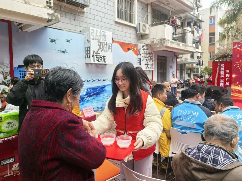 爱心茶摊前,志愿者们为来往居民、快递员等新就业形态劳动者递上热茶,送上节日关怀;在敬老服务点位,协助社区为老年居民、困难群众分发热气腾腾的元宵汤圆,耐心陪伴老人闲话家常,用贴心举动传递温暖。此外,志愿者还积极配合主办方开展移风易俗、禁毒知识普及等宣传工作,助力普法宣传、金融安全知识讲解等环节有序开展,以实际行动诠释“奉献、友爱、互助、进步”的志愿精神。