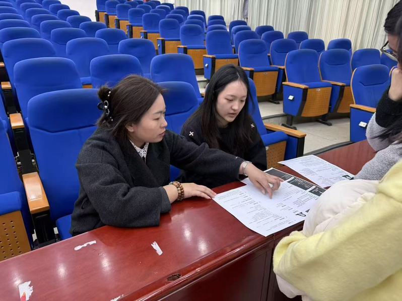 在“现场简历诊断服务活动”中,来自福建青年人才开发中心的金亮老师为同学们提供了一对一的精准指导。作为拥有十五年毕业生就业指导经验的国家二级职业指导师,金老师现场审阅同学们的简历,从内容优化、逻辑梳理到细节打磨,逐页指出问题并给出修改建议,让大家直观感受到优质简历的标准,切实解决了求职过程中的简历痛点。