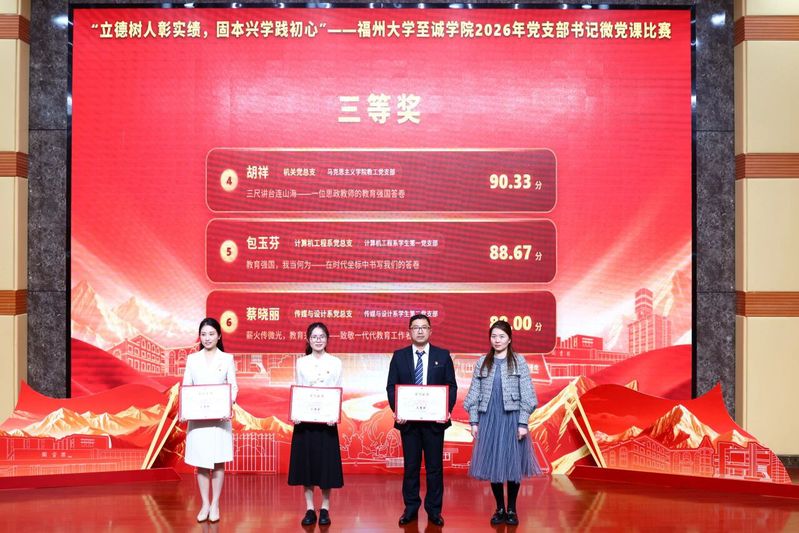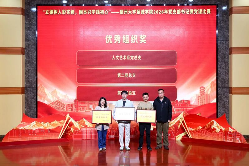 3月31日,由中共福州大学至诚学院主办、党委组织部(党校)、人文艺术系党总支承办的“立德树人彰实绩,固本兴学践初心”微党课大赛在科报厅隆重举行。福州大学马克思主义学院王剑龙老师、组织部组织科吴雨桐老师、金山学院党工部负责人,马克思主义学院党总支书记李佳曦老师担任大赛评委,福州大学至诚学院党委常务副书记何小红、各机关部(处),各党总支负责人应邀出席。