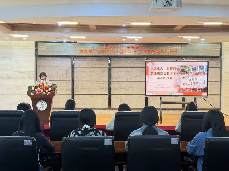 为扎实推进教育实习工作,助力实习生快速适应岗位、提升实践能力,4月7日下午,“以文化人,启智润心”鼓楼第三实验小学—福州大学至诚学院实习动员会在鼓楼第三实验小学顺利召开。本次会议由福州大学至诚学院人文艺术系辅导员杨庆带队,人文艺术系实习学生参与本次动员会。杨庆老师与鼓楼第三实验小学许主任共同发表讲话,为全体实习生指明实习方向。